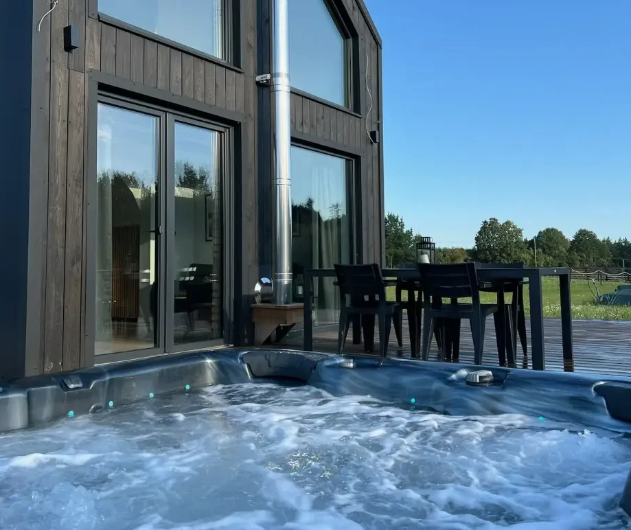 Domek z jacuzzi i kominkiem na Kaszubach to idealne miejsce na relaks – połącz ciepło płomieni z odprężającą kąpielą w jacuzzi. Wygodne wnętrza, przytulny klimat i pełne wyposażenie sprawią, że poczujesz się tu jak w domu.