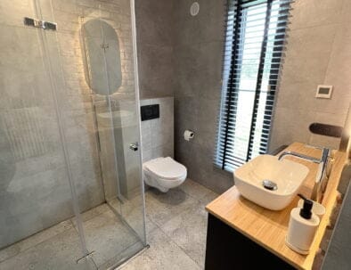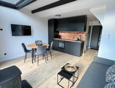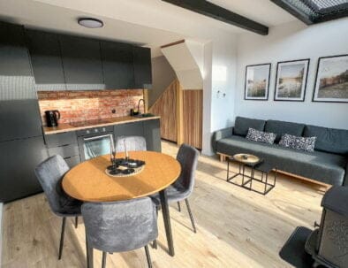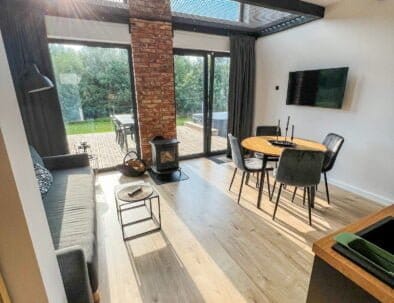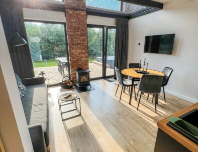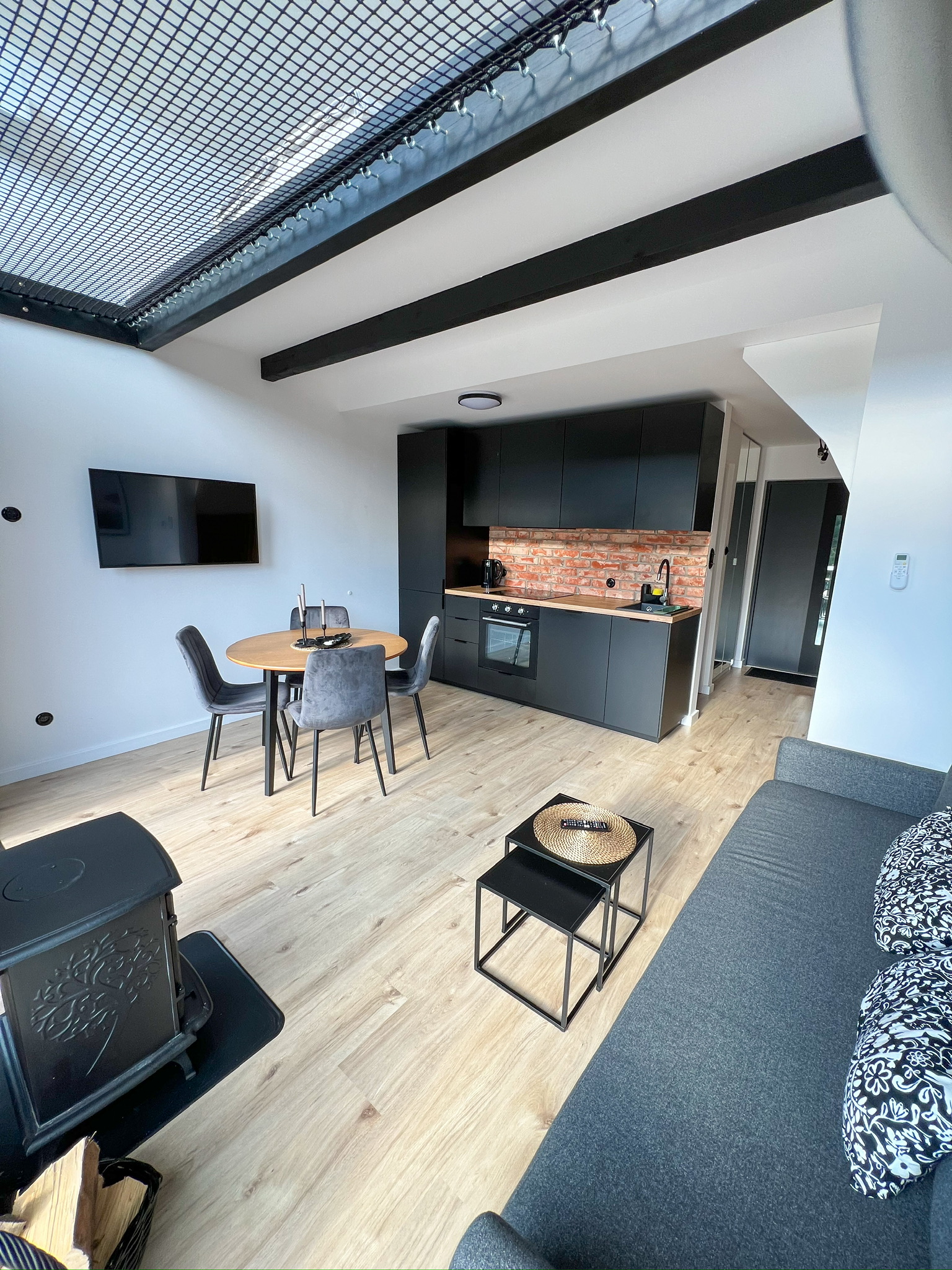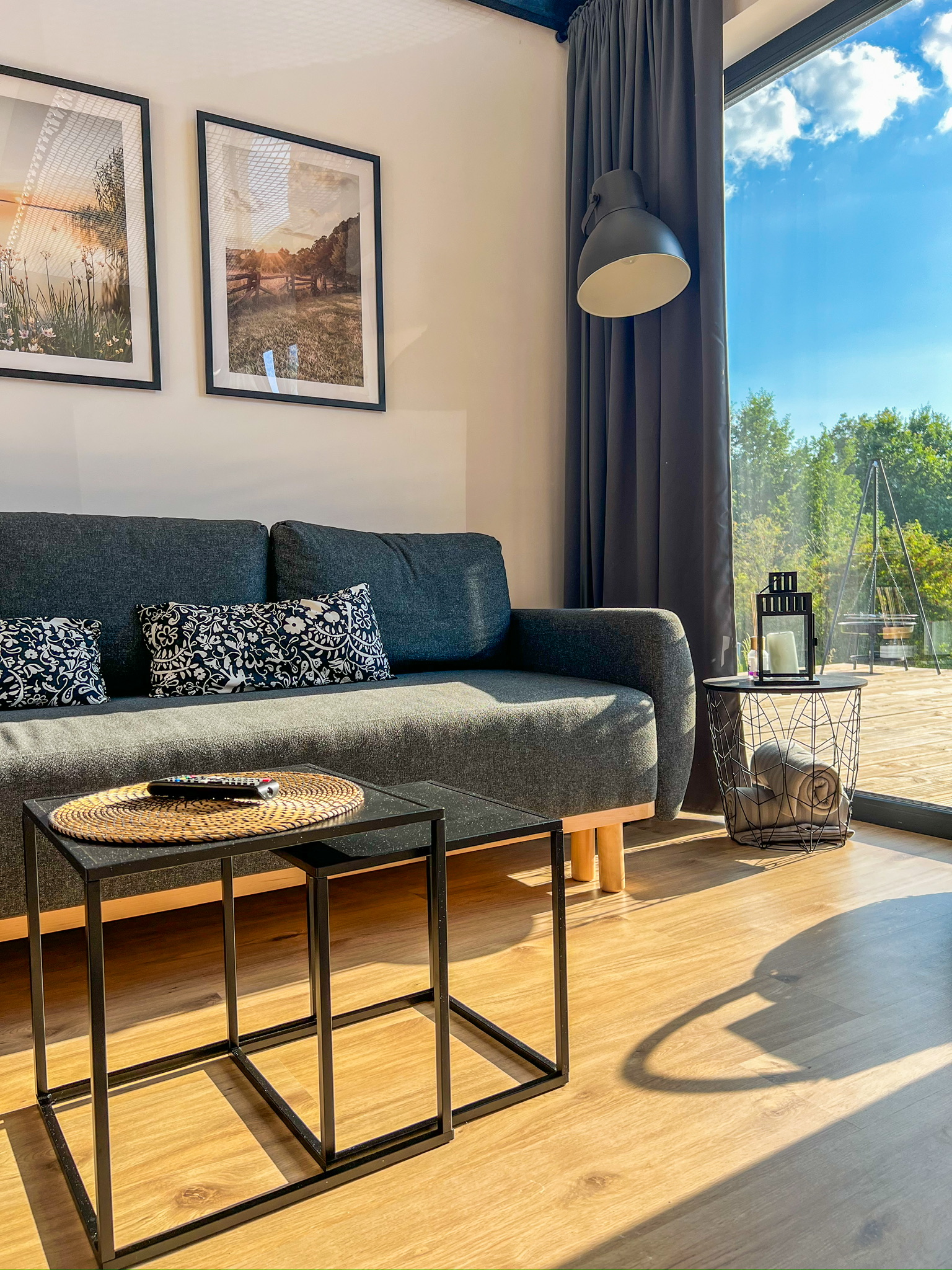 Niezależnie od pogody na zewnątrz, w naszym domku zawsze panują optymalne warunki. Klimatyzacja zapewnia przyjemny chłód latem, a ogrzewanie podłogowe zadba o ciepło w zimowe wieczory.