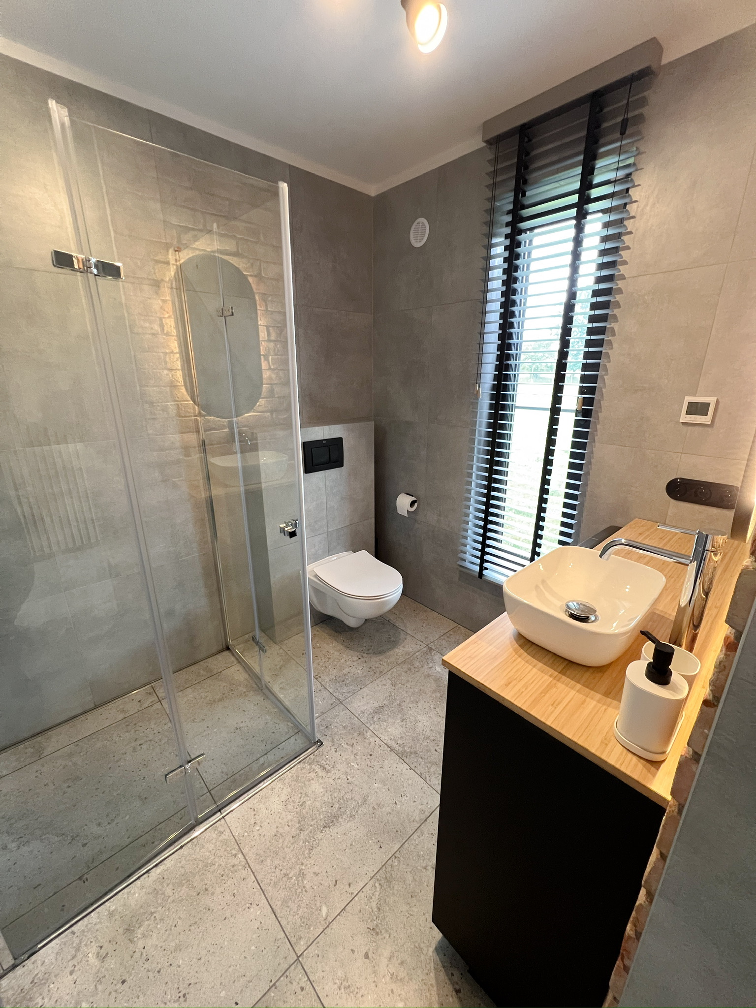 Komfortowa i przestronna prywatna łazienka dostępna wyłącznie dla Ciebie i Twojej rodziny. Wyposażona we wszystkie niezbędne udogodnienia, w tym prysznic i ręczniki, zapewnia wygodę i intymność.