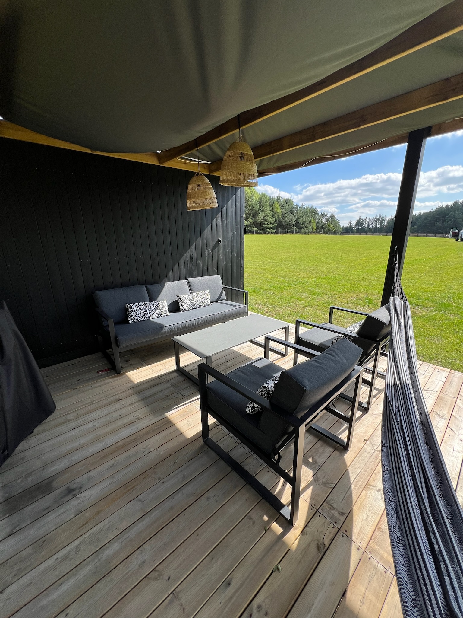 Często spędzamy tak czas wolny i śmiało możemy powiedzieć, że to miejsce jest jednym z lepiej przygotowanych na gości - wszystko czyste, pachnące jeszcze nowością. W kuchni nie brakuje absolutnie niczego, wyposażona w najdrobniejszych szczegółach. Hamak, leżaki, zestaw wypoczynkowy na świeżym powietrzu, miejsce na ognisko, kominek, siatka przy oknie - idealne miejsce do czytania książek… no i najważniejsze - jacuzzi ze świetnym systemem nagłośnieniowym.