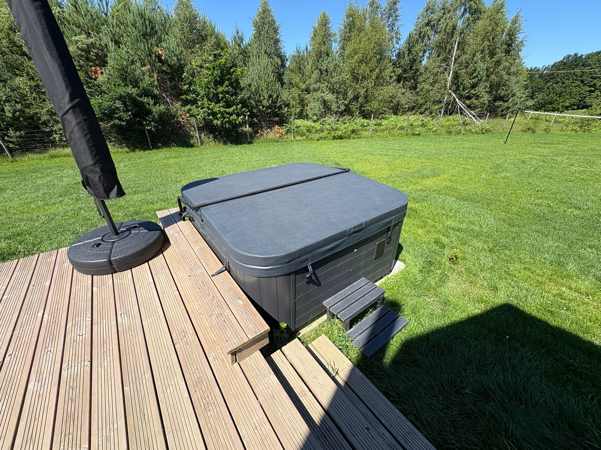 Relaks w naszym jacuzzi na świeżym powietrzu to idealny sposób na odpoczynek po dniu pełnym aktywności. Zrelaksuj się w gorącej wodzie pod gołym niebem, otoczony pięknem natury. Jacuzzi jest zawsze ciepłe cały rok, dzięki systemowi elektrycznego ogrzewania.